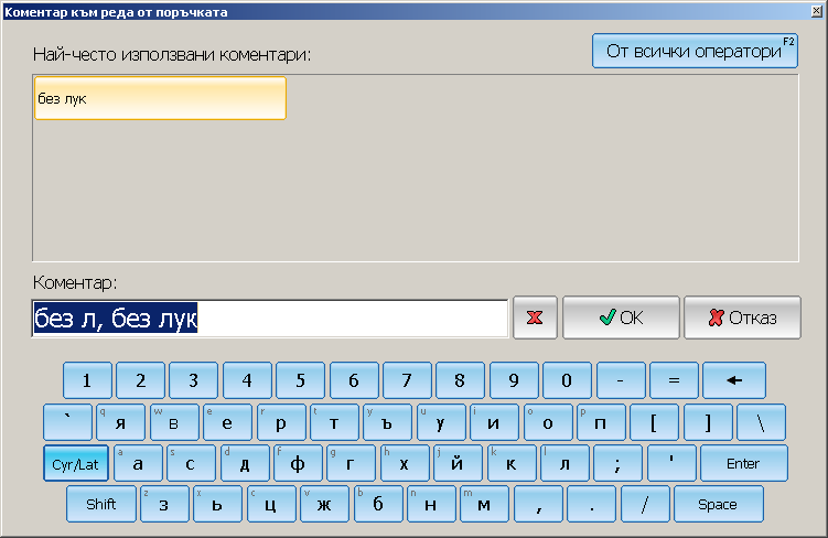 Персонала от един обект, в който ползват често коментарите при поръчки, казаха че има промяна след смяната на версия, и коментарите излизат заедно със изписаните букви + коментара от табчето което са избрали с мишката, питането е дали може да се върне старият начин, като се избере с мишката въпросния бутон на коментар да изчисти това което е набрано до момента(търсенето) и да го замести с избрания коментар